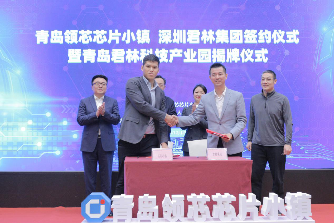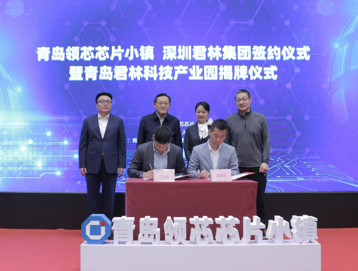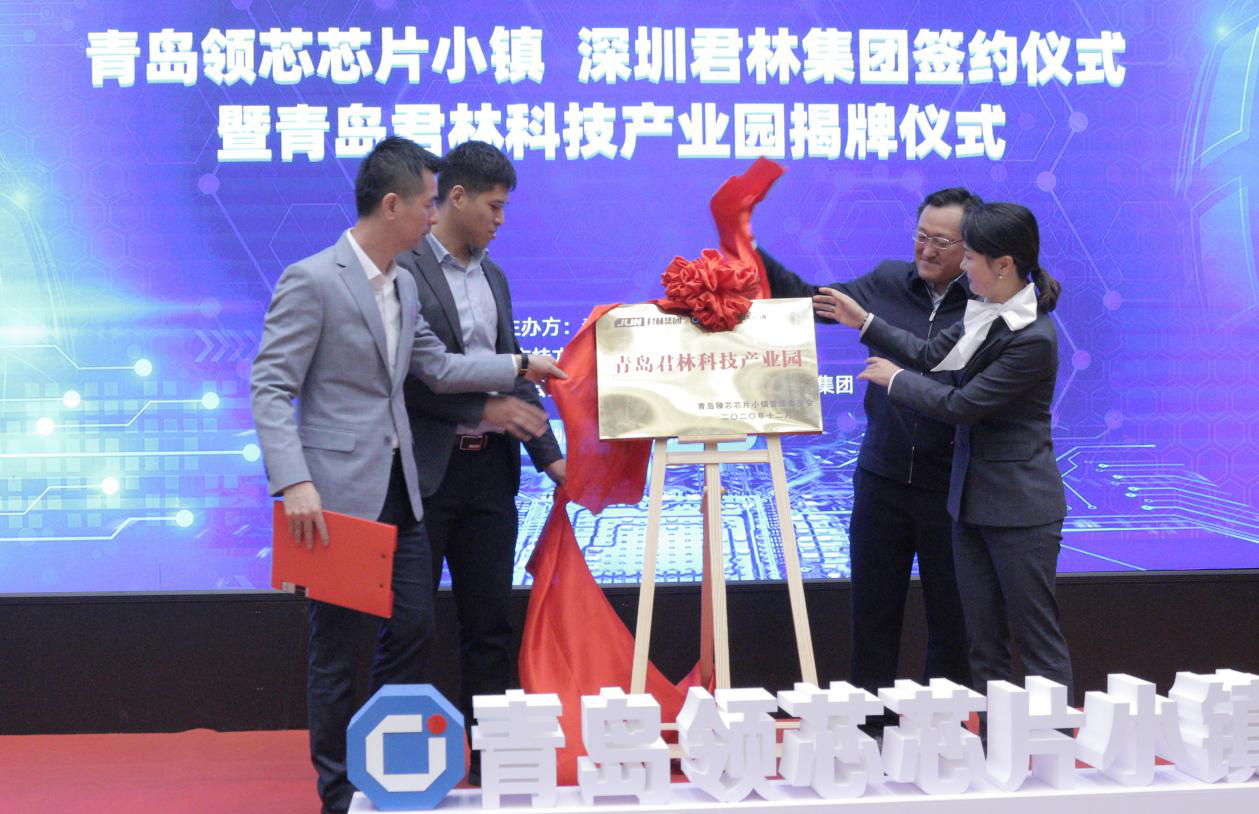 深圳君林集团执行董事马辉民和青岛芯云企业管理有限公司总经理齐畅作代表双方企业签字,标志着青岛君林科技产业园正式落户在美丽的青岛莱西市。山东省莱西市政府市长王清源和深圳君林集团董事长林燕君共同为青岛君林科技产业园揭牌。
